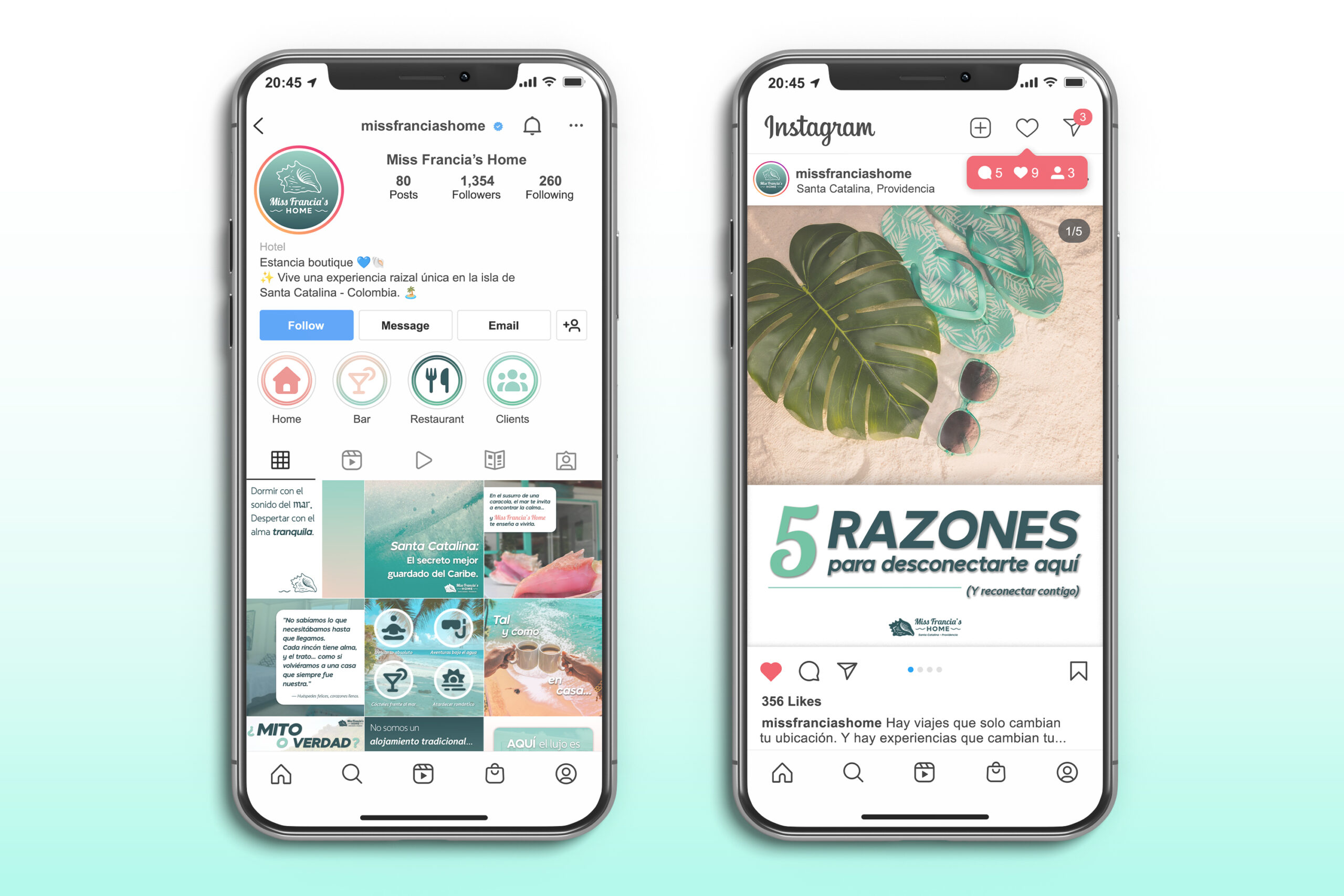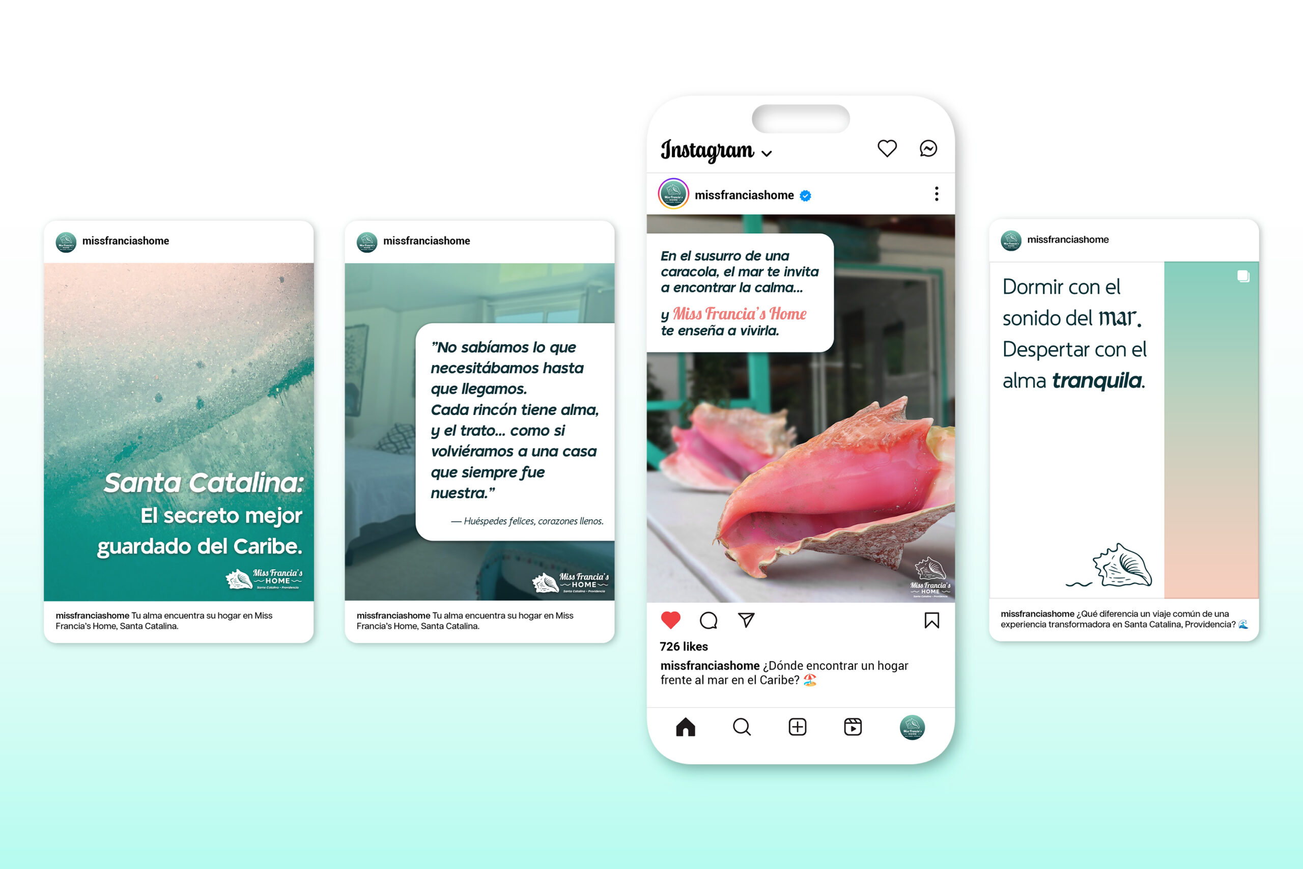 Miss Francia’s Home es un boutique lodge isleño ubicado en Santa Catalina, Providencia, cuya identidad gráfica fue diseñada desde cero para transmitir calidez, raíces caribeñas y autenticidad local. Desarrollé la línea visual completa de la marca, incluyendo paleta, tipografías, estilo fotográfico y piezas para redes sociales, así como material físico para el hotel —catálogos, señalética y códigos QR— asegurando coherencia estética y una comunicación cercana y memorable en todos los puntos de contacto.