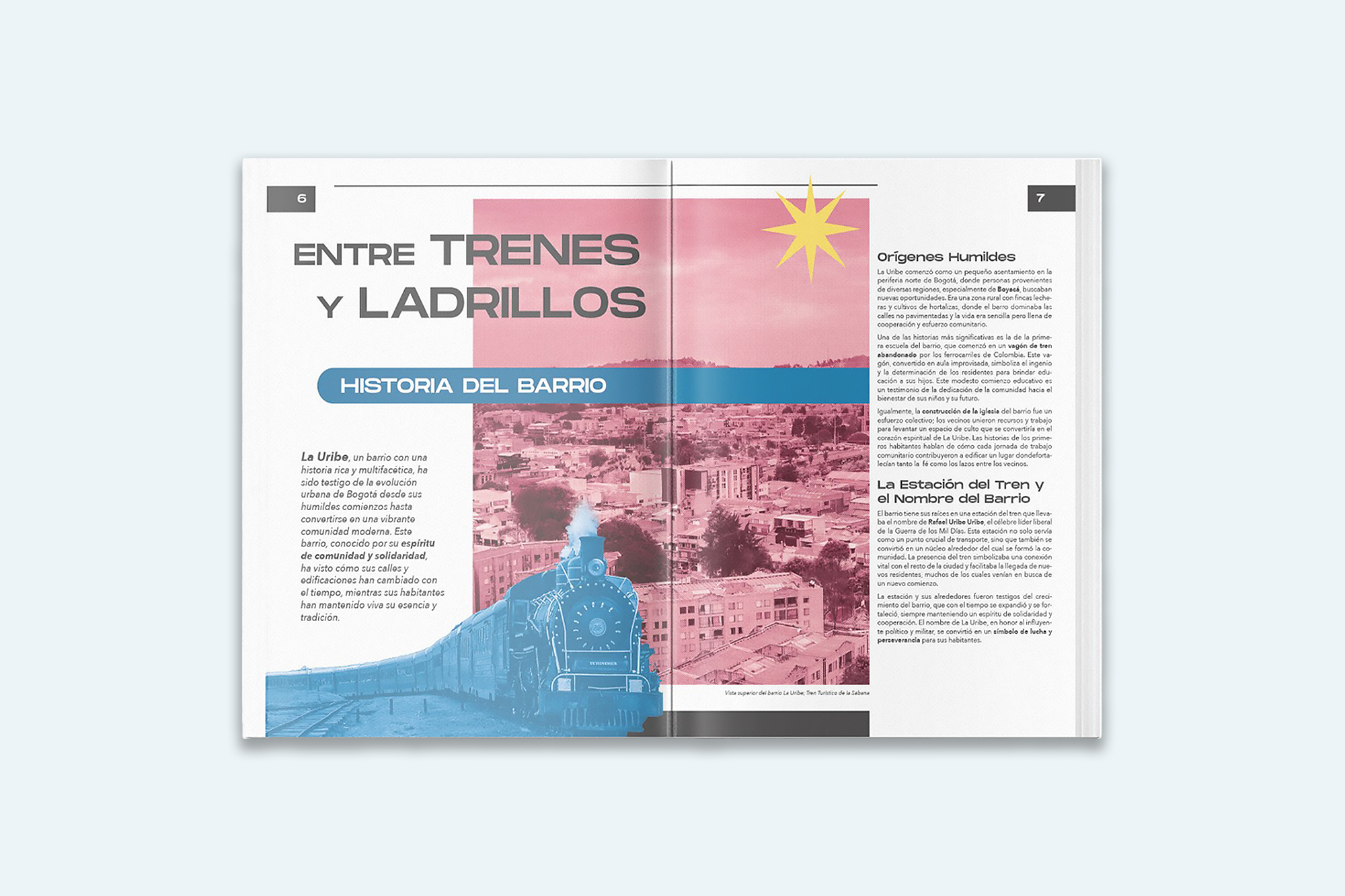 Raíces: La Uribe es una revista creada para documentar la historia, cultura y vida cotidiana del barrio La Uribe en Bogotá. El proyecto incluyó investigación de campo, entrevistas con habitantes clave y registro fotográfico original tomado por mí. La publicación rescata memoria local a través de relatos, retratos y crónicas que muestran la identidad del barrio y su comunidad desde una mirada honesta y cercana.